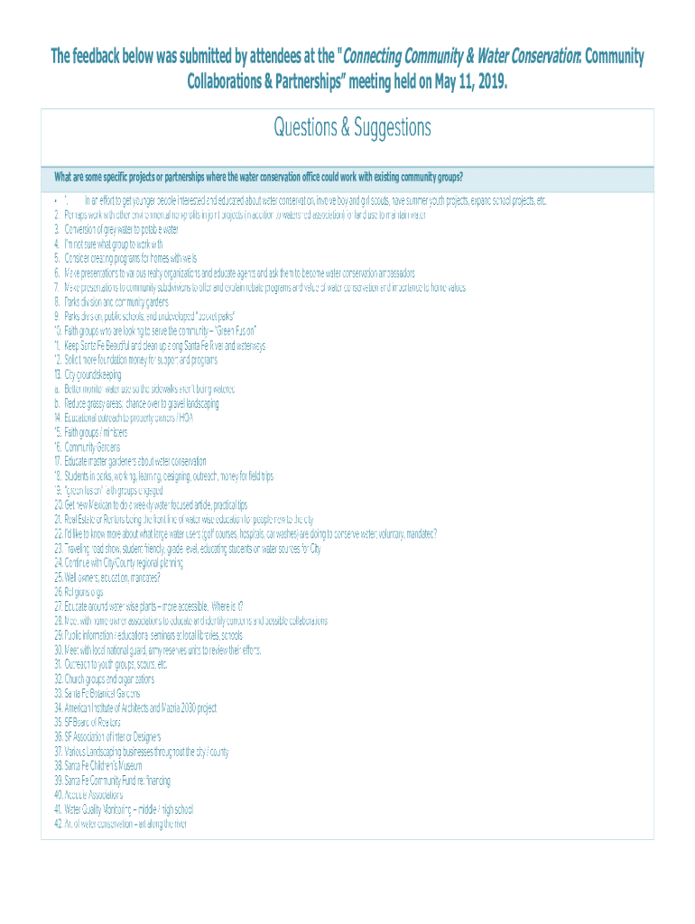 The feedback below was submitted by attendees at the \"Connecting Community & Water Conservation: Community Collaborations & Partnerships meeting held on May 11, 2019.What are some specific projects