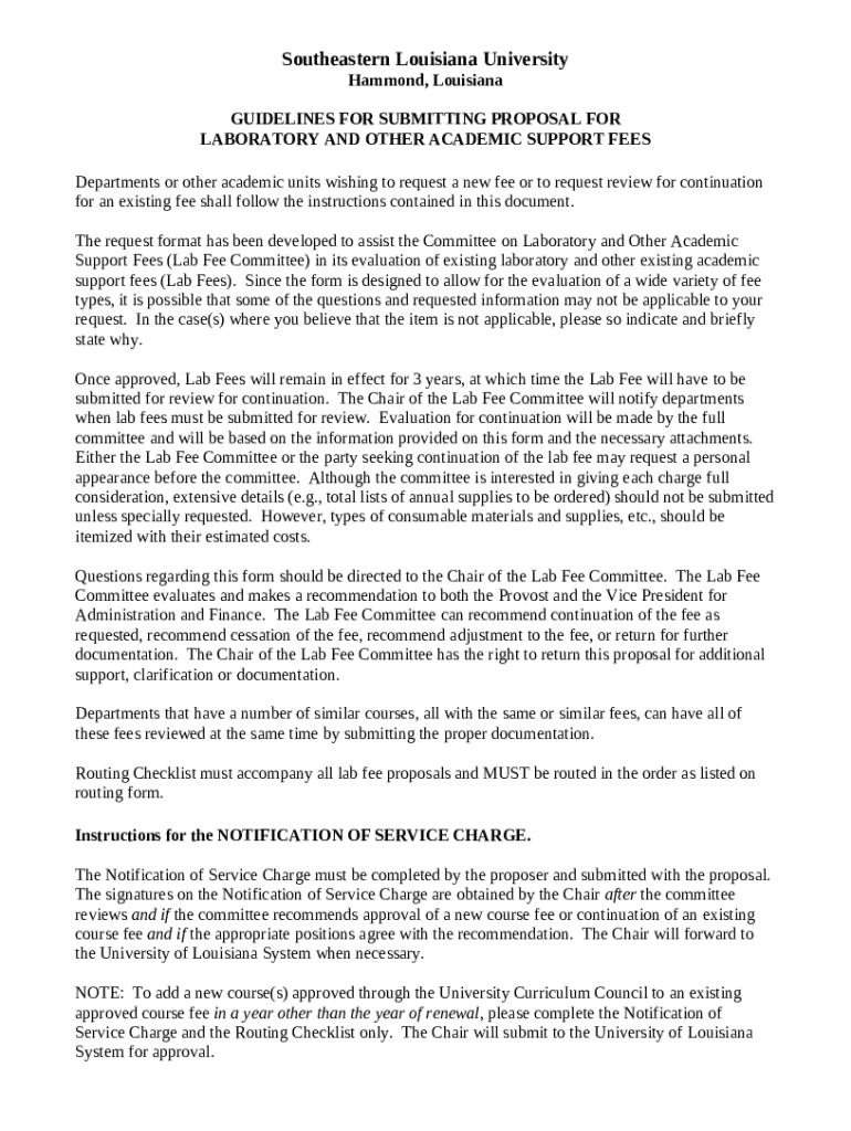 Instructions for the form Laboratory and Other Academic Support Fees Proposal