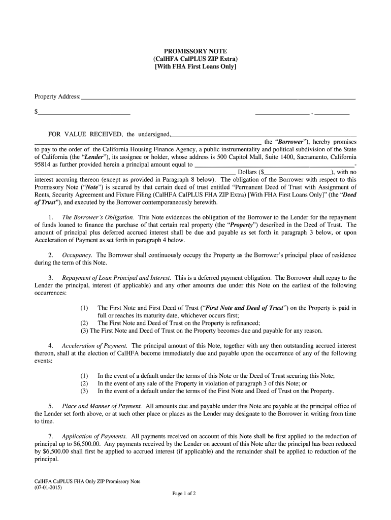 Single Family Lending Program Bulletin June 15, 2015, Program Bulletin #2015-05 To: Calf Approved Lenders Callus FHA First Mortgage Loan Now Includes ZIP Extra Calf will add $6,500 in additional assistance