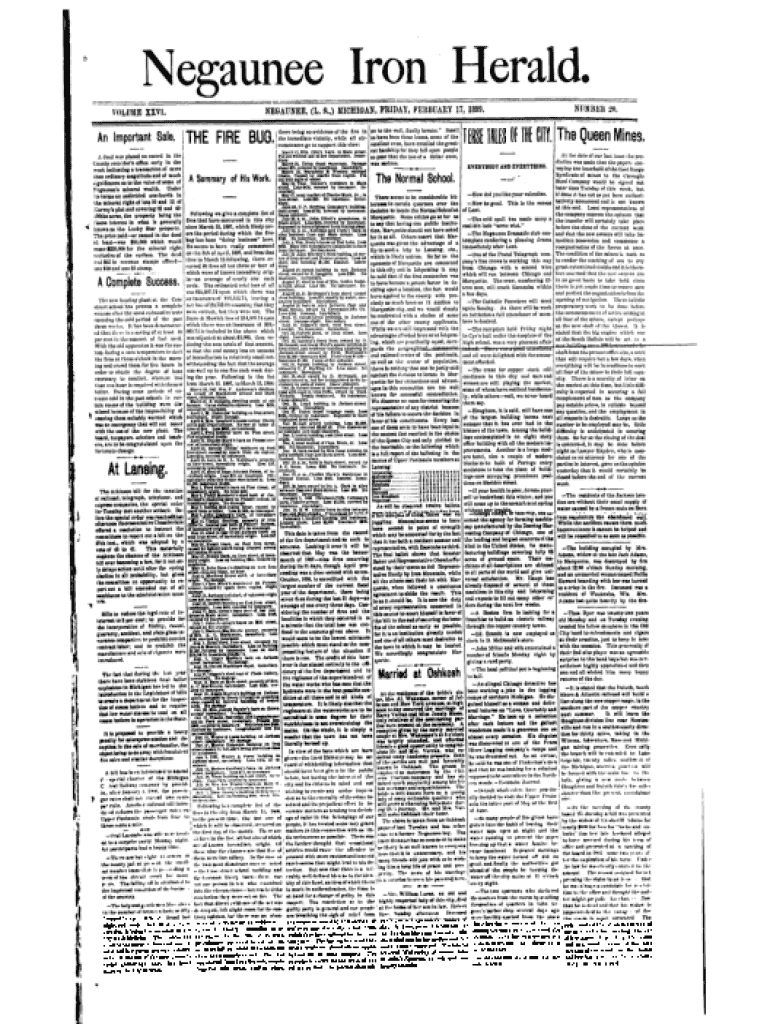 Negaunee Iron Herald.t)vo lum eN E G A U N E E , ( L . 8 .,) M IC H IG A N , F R ID A Y , K E R B U A R Y 17, 1899.x x v i.N U M B E R 20.there being no evidence of the fire in en to tbe well, finally