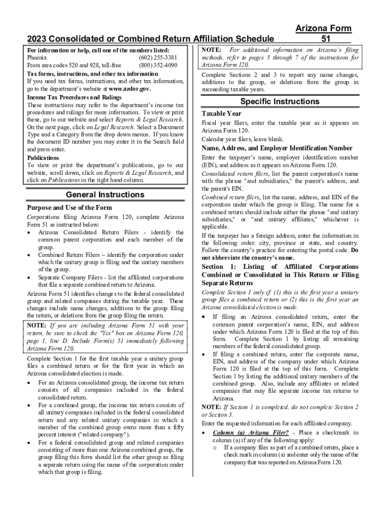 2023 Consolidated or Combined Return Affiliation Schedule For information or help, call one of the numbers listed: Phoenix (602) 2553381 From area codes 520 and 928, tollfree (800) 3524090 Tax forms,