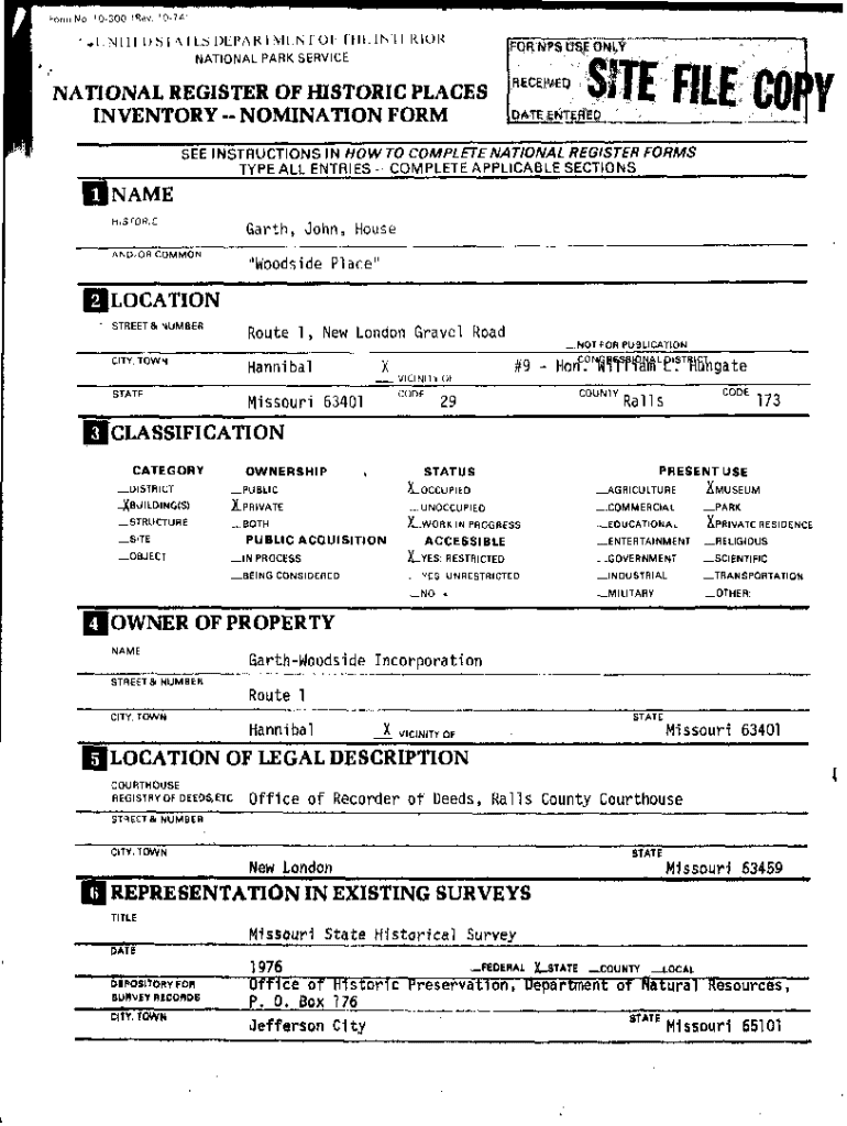 Get the free National Register of Historic Places Nomination Form