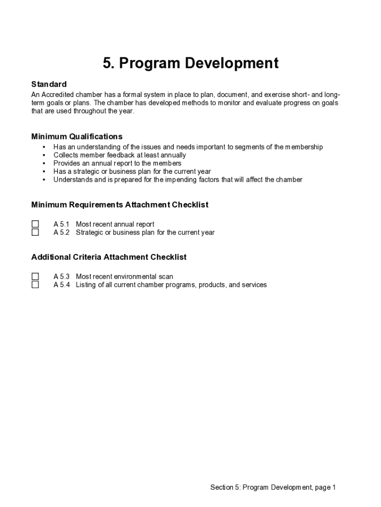 2024 Accreditation Application for Local ChambersSection 5: Program Development5. Program Development Standard An Accredited chamber has a formal system in place to plan, document, and exercise short
