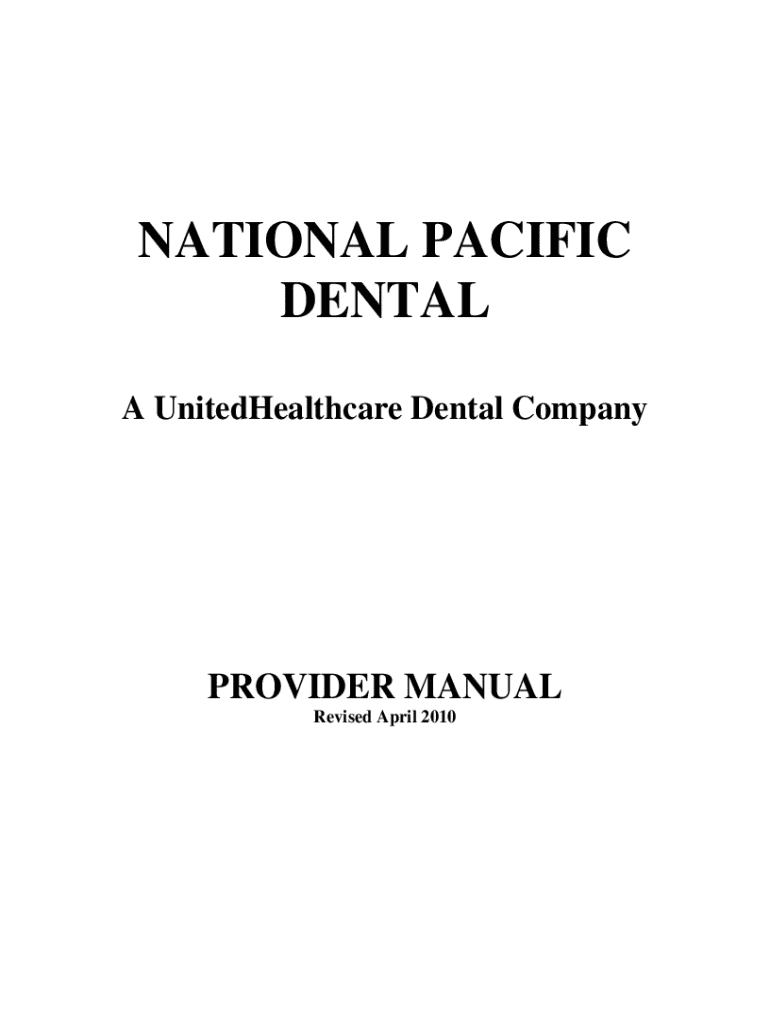 NATIONAL PACIFIC DENTAL A UnitedHealthcare Dental CompanyPROVIDER MANUAL Revised April 2010TABLE OF CONTENTS INTRODUCTION Purpose Corporate Mission Statement Vision Important Phone Numbers A Quick