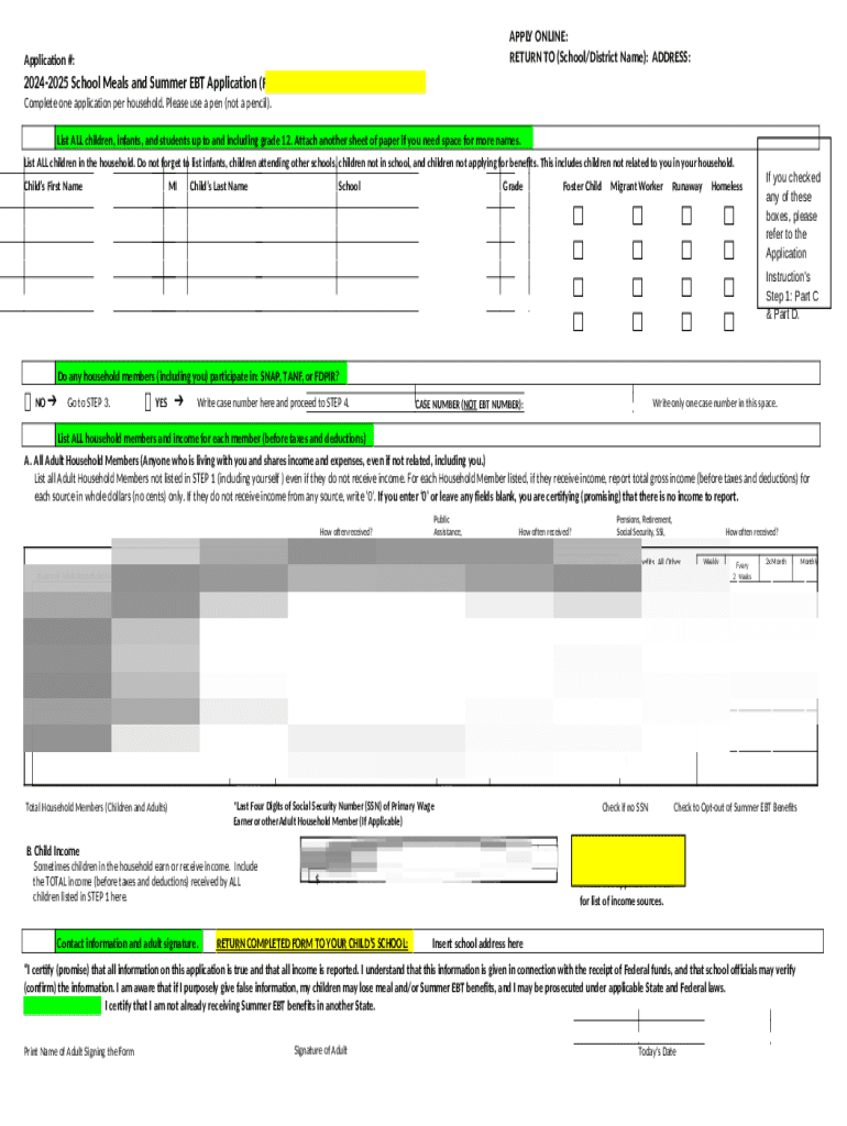 Template 2024-2025 School Meals and Summer Ebt Application instructions