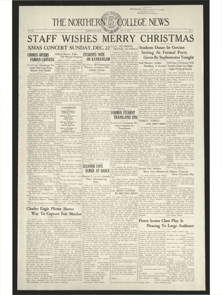 STUDENTS XMAS CONCERT SUNDAY, DEC. 22 L.S.A. TRAVEL TO STOUT Students Dance In Grecian Setting A t Formal Party Talks STUDENTS VOTE CHORUS OFFERS GilbertOnBrown Mental Hygiene Given By Sophomores