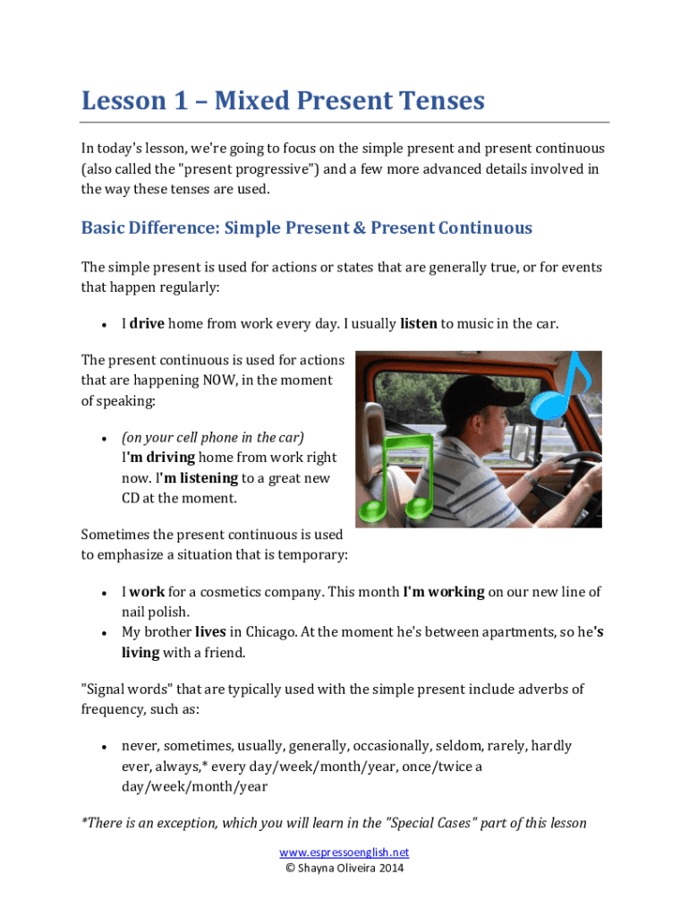 Get the free Advanced English Grammar Lesson - Mixed Present Tenses