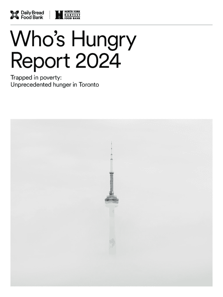 Whos Hungry Report 2024 Trapped in poverty: Unprecedented hunger in TorontoContents Key findingsPortrait of food bank clientsForewordFood insecurity and food bank use in Toronto43Methodology46Acknowledgements47References48The