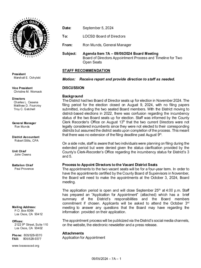 Get the free Agenda Item 7A Appointment to Fill Vacancy on Board or ...