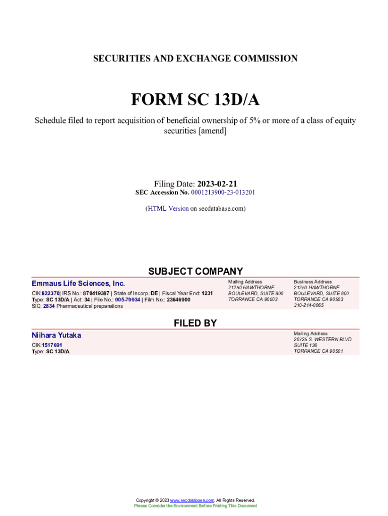 Get the free Emmaus Life Sciences, Inc. Form SC 13D/A Filed 2023-02-21. Accession Number