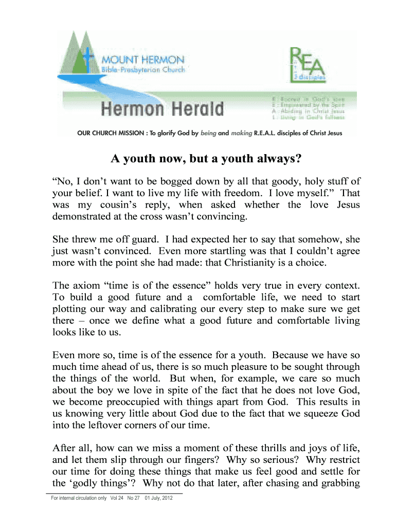 Get the free A youth now, but a youth always? - Hermon - hermon org