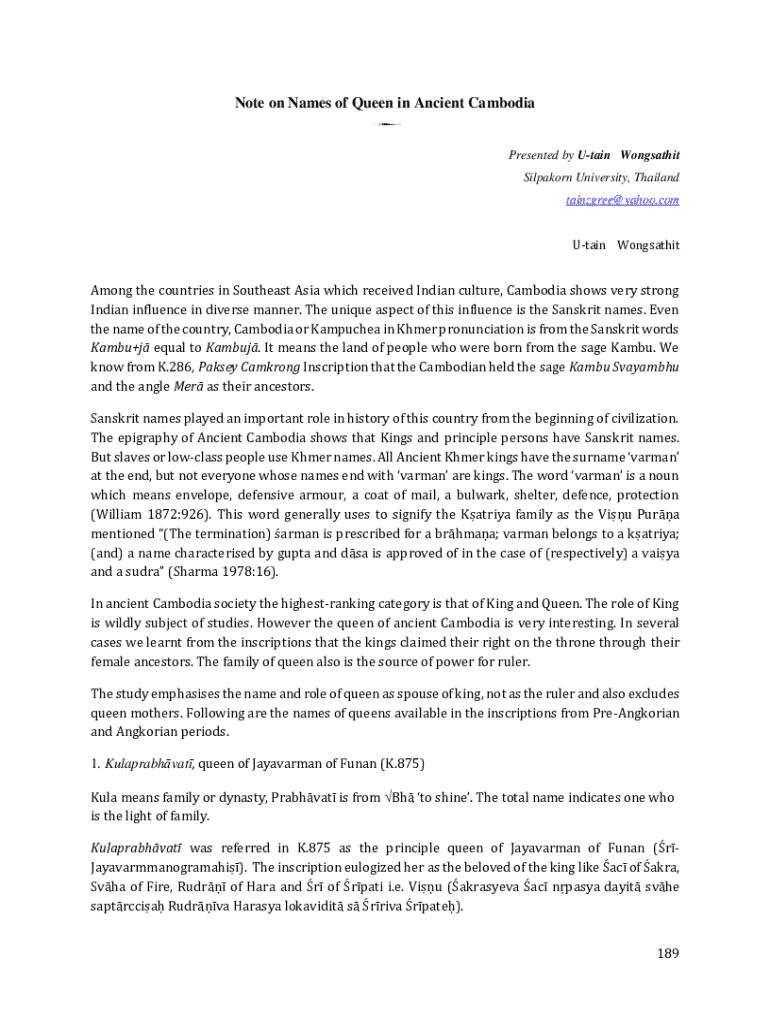 Get the free Note on Names of Queen in Ancient Cambodia