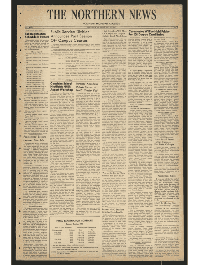 THE NORTHERN NEWS NORTHERN MICHIGAN COLLEGE VO L. XLTVDon\'t forget these slips . . .Fall Registration S ch ed u le Is Posted R e g istra tio n f o r th e fa ll se m ester, 196263, w ill b e h eld