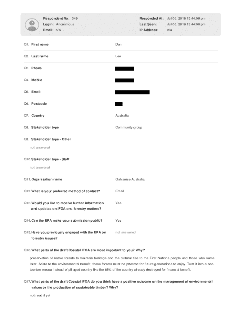 Respondent No: 349Responded At:Jul 06, 2018 15:44:09 pmLogin: AnonymousLast Seen:Jul 06, 2018 15:44:09 pmEmail: n/aIP Address:n/aQ1. First nameDanQ2. Last nameLeeQ3. Phone Q4. Mobile Q5. Email Q6.