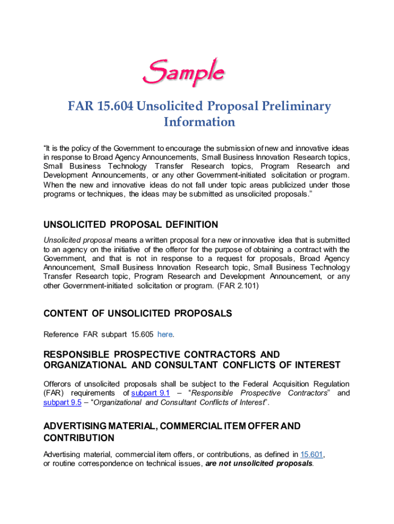 Get the free Far 15.604 Unsolicited Proposal Preliminary Information