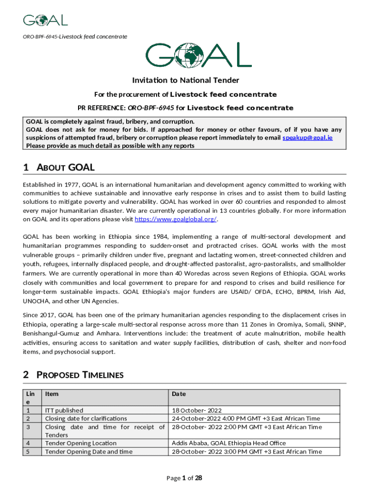 Instructions for the National Tender Invitation form