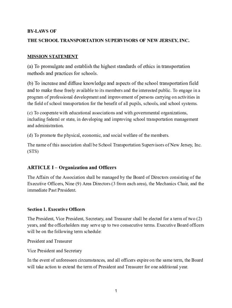 Get the free by-laws of the School Transportation Supervisors of New Jersey, Inc.