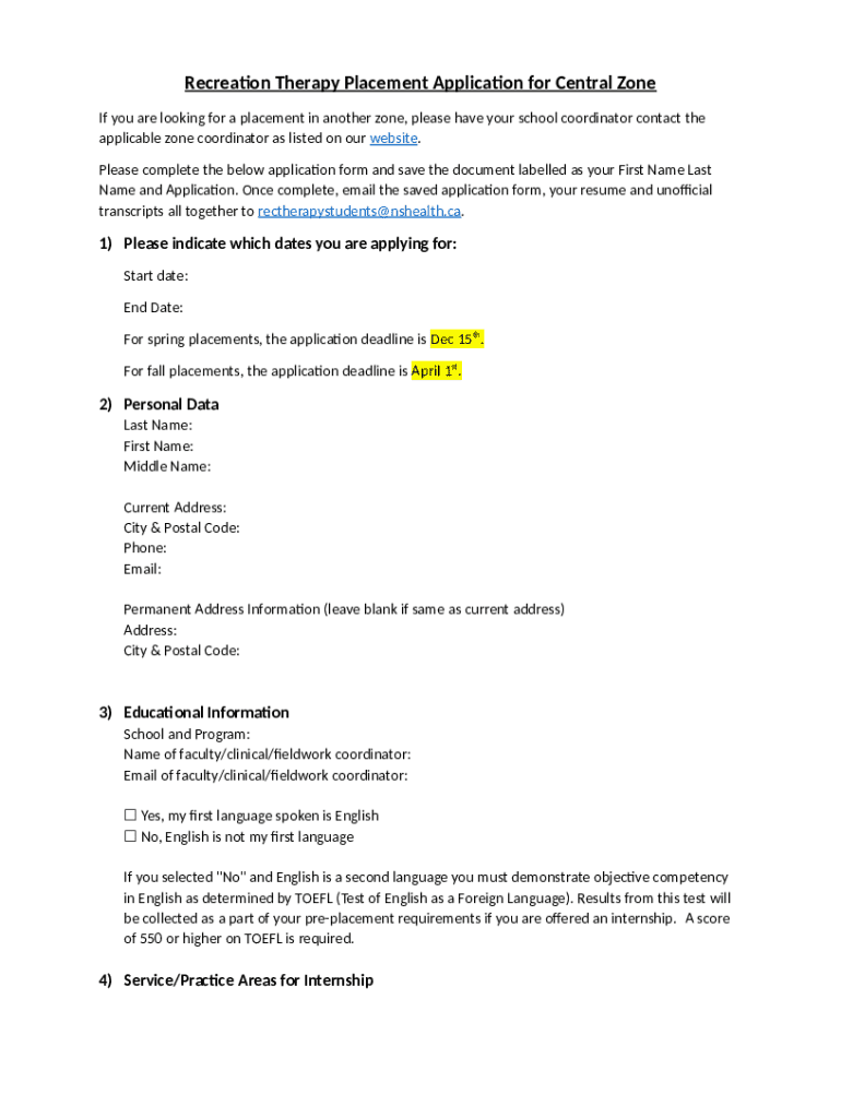 How to fill out Recreation Therapy Diploma Placement Application ...