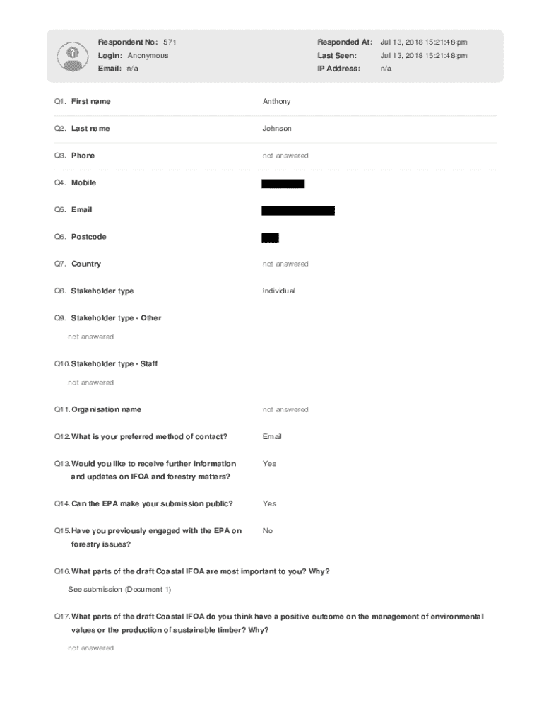 Respondent No: 571Responded At:Jul 13, 2018 15:21:48 pmLogin: AnonymousLast Seen:Jul 13, 2018 15:21:48 pmEmail: n/aIP Address:n/aQ1. First nameAnthonyQ2. Last nameJohnsonQ3. Phonenot answeredQ4. Mobile