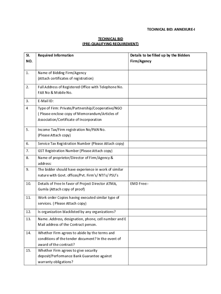 Get the free Technical Bid Annexure-i