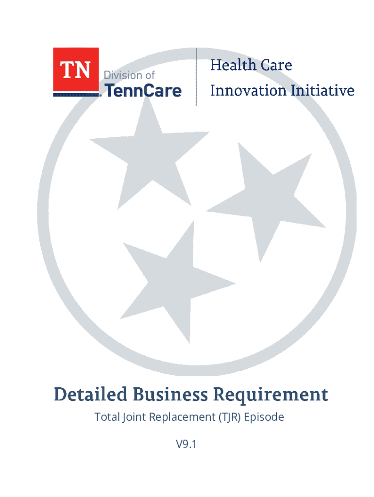 This document provides detailed business requirements for managing episodes related to Total Joint Replacement (TJR), focusing on patient journeys, episode triggers, claims processing, risk adjustment methodologies, and quality metrics to enhance the efficiency and quality of care delivered to patients undergoing hip and knee replacement procedures.