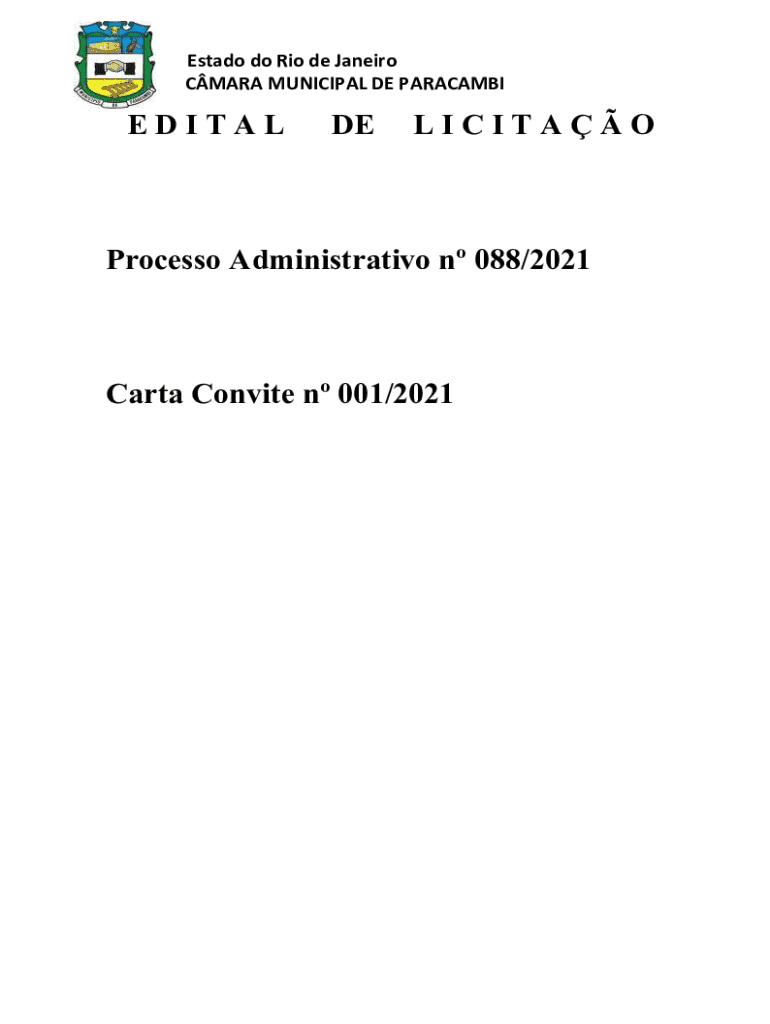 Estado do Rio de Janeiro CMARA MUNICIPAL DE PARACAMBIEDITALDELICITAOProcesso Administrativo n 088/2021Carta Convite n 001/2021Estado do Rio de Janeiro CMARA MUNICIPAL DE PARACAMBI 1 PREAMBULO 1.1.