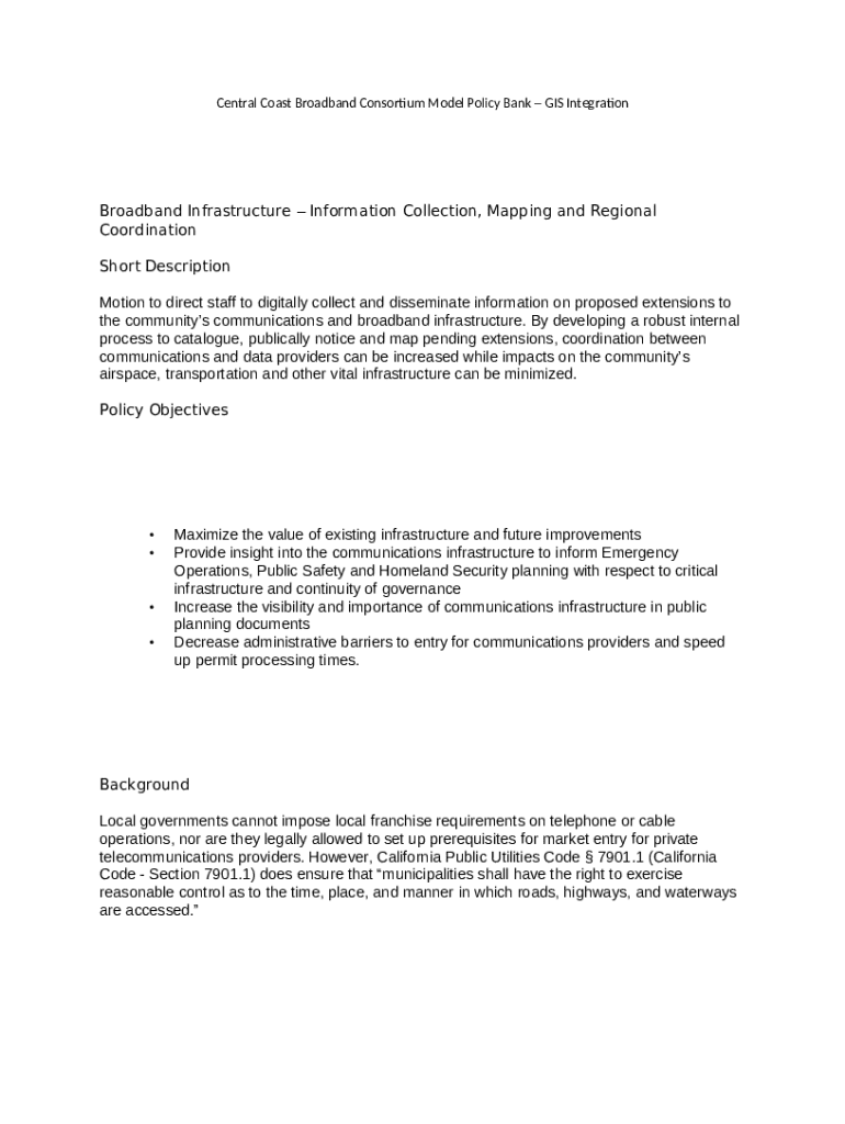 The Broadband Infrastructure Ination Collection is a writable document that should be submitted to the required address to provide certain info. It has to be filled-out and signed, which may be done in hard copy, or via a particular solution e. g. PDFfiller. It allows to complete any PDF or Word document directly in your browser, customize it according to your needs and put a legally-binding electronic signature. Once after completion, the user can easily send the Broadband Infrastructure Ination Collection to the appropriate person, or multiple ones via email or fax. The template is printable as well thanks to PDFfiller feature and options presented for printing out adjustment. In both electronic and physical appearance, your form should have a clean and professional outlook. It's also possible to save it as the template for further use, without creating a new file from the beginning. You need just to edit the ready document.