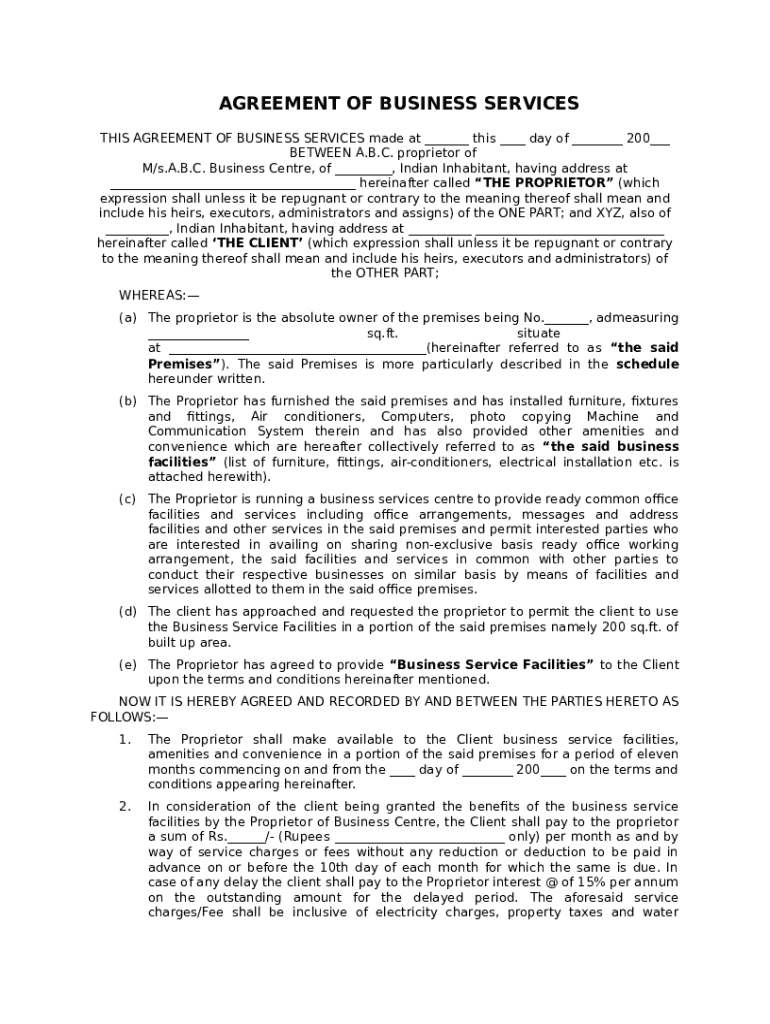 Instructions for the Business Services AgreementAgreementsLaw Library form