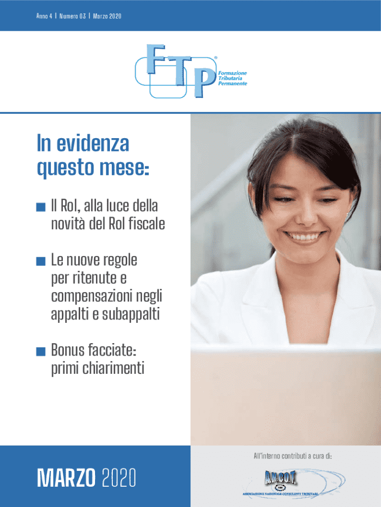 Anno 4 | Numero 03 | Marzo 2020In evidenza questo mese: Il Rol, alla luce della novit del Rol fiscale Le nuove regole per ritenute e compensazioni negli appalti e subappalti Bonus facciate: primi