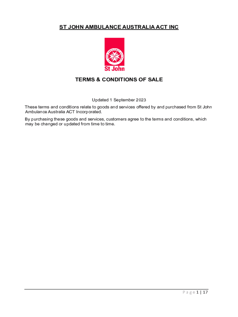 ST JOHN AMBULANCE AUSTRALIA ACT INCTERMS & CONDITIONS OF SALEUpdated 1 September 2023 These terms and conditions relate to goods and services offered by and purchased from St John Ambulance Australia