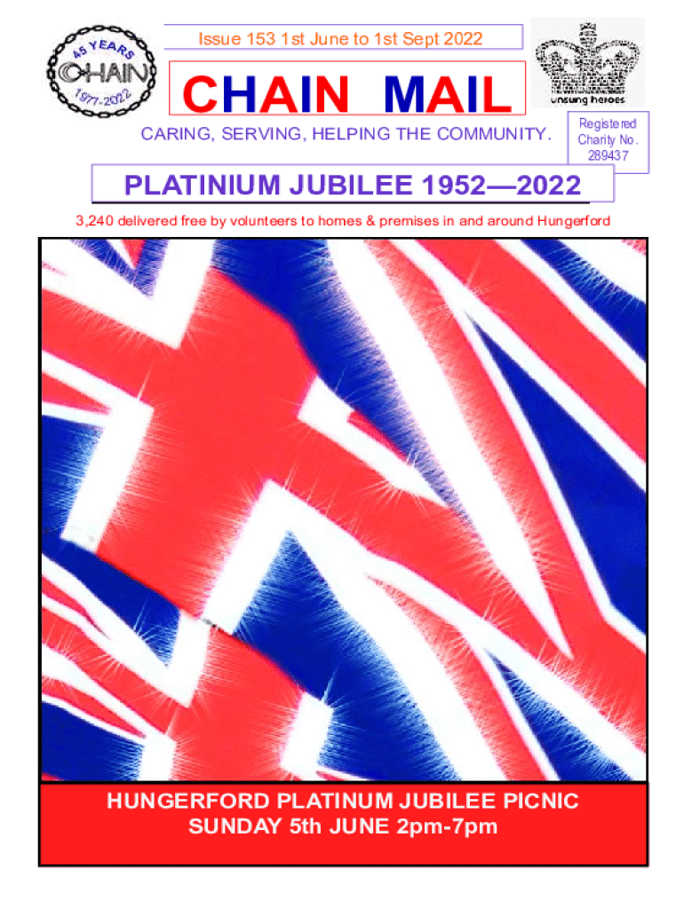 Issue 153 1st June to 1st Sept 2022CHAIN MAIL CARING, SERVING, HELPING THE COMMUNITY.PageRegistered Charity No. 289437Linking the Hungerford Community PLATINIUM JUBILEE 19522022 3,240 delivered free