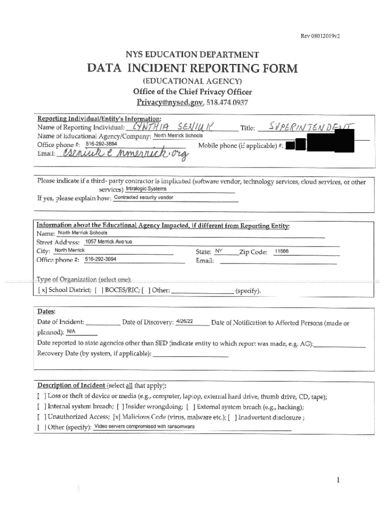 Get the free Data Incident Reporting Form