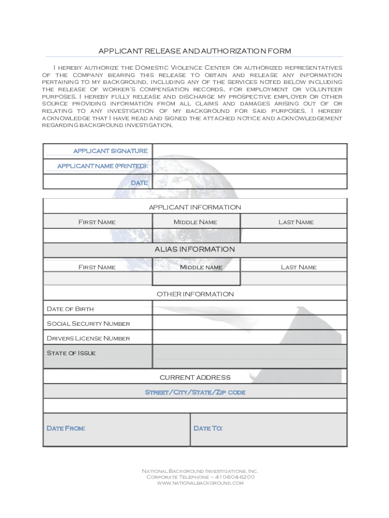 Get the free Applicant Release and Authorization Form