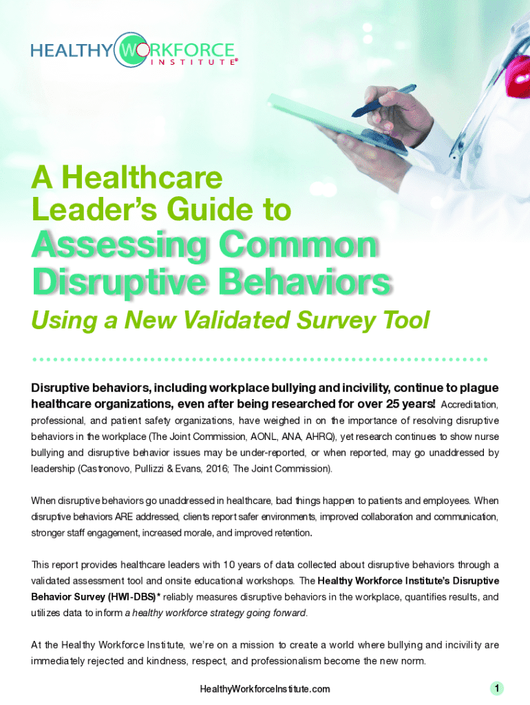 A Healthcare Leaders Guide toAssessing Common Disruptive BehaviorsUsing a New Validated Survey Tool Disruptive behaviors, including workplace bullying and incivility, continue to plague healthcare