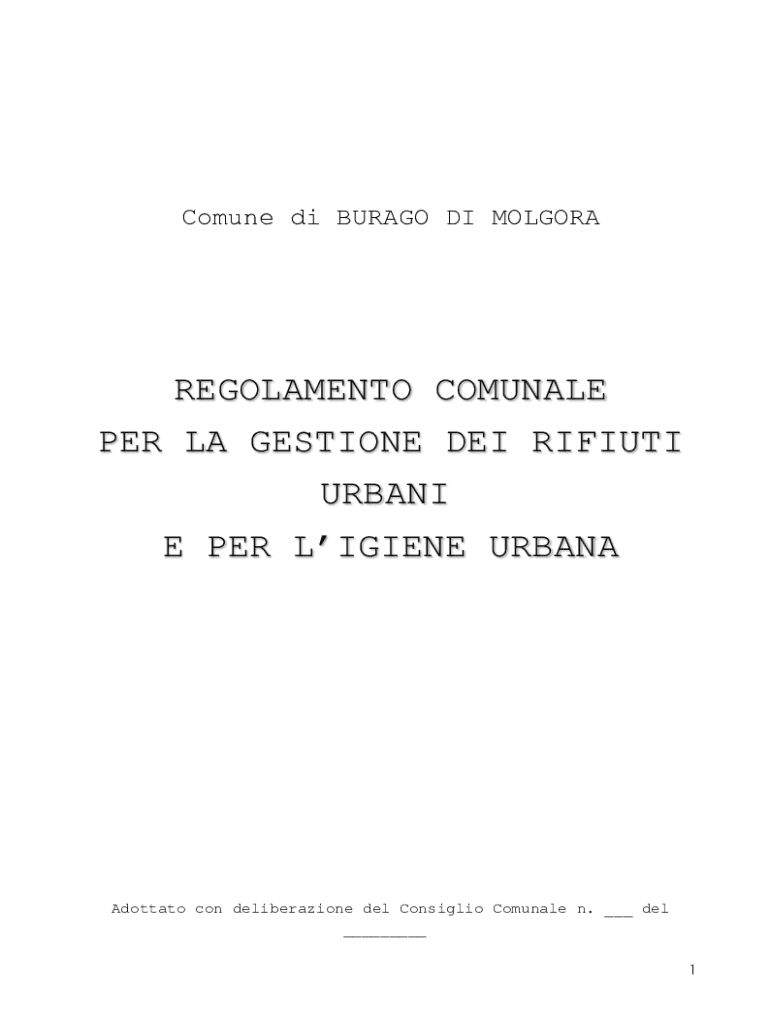 Ottieni il gratuito regolamento comunale per la gestione dei rifiuti urbani e per l ...