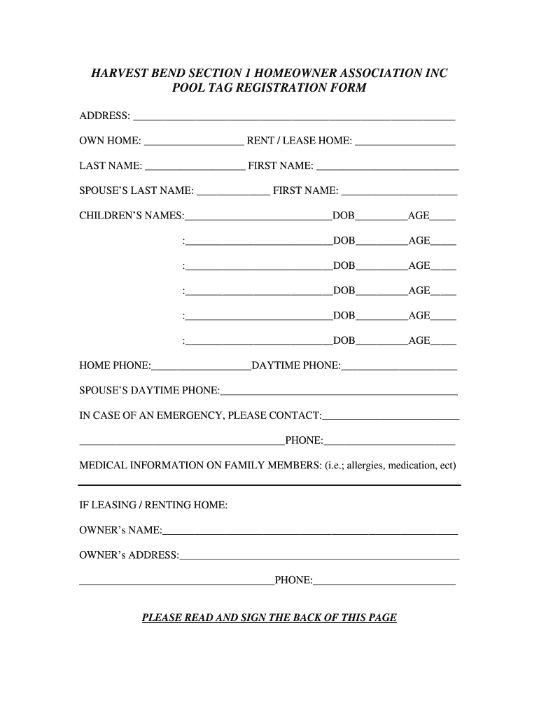 To fill out the Harvest Bend Pool registration, residents should obtain the appropriate forms from the neighborhood association, complete the required information, and submit it according to the guidelines provided.