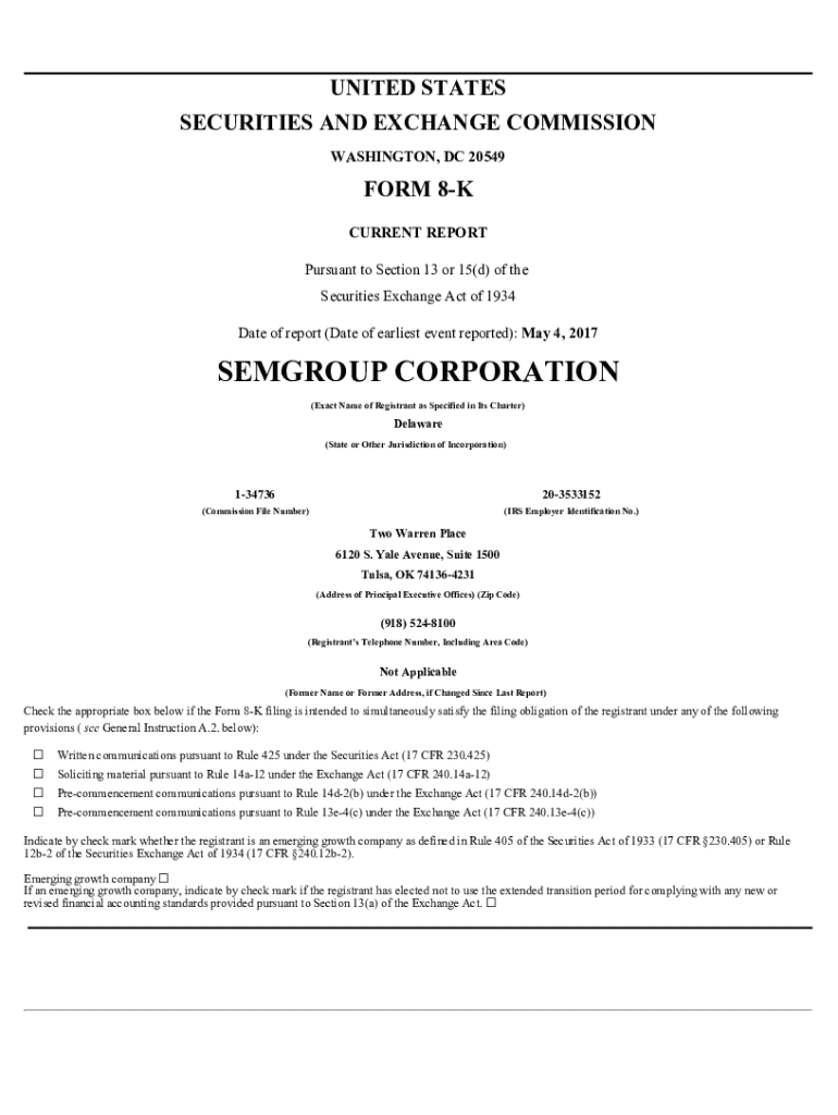 Get the free SEMGROUP CORPORATION