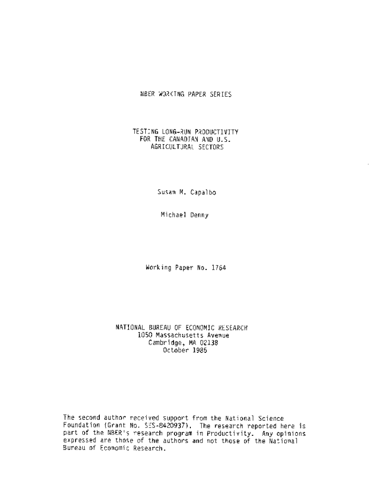 This working paper examines the long-run productivity in the agricultural sectors of Canada and the United States, analyzing data linked between the two countries during the post-WWII period. It tests various models of productivity considering both gross and net output measures, with findings indicating that gross output models are more appropriate than net output models in representing productivity growth. The paper also explores the implications of agricultural productivity on government...