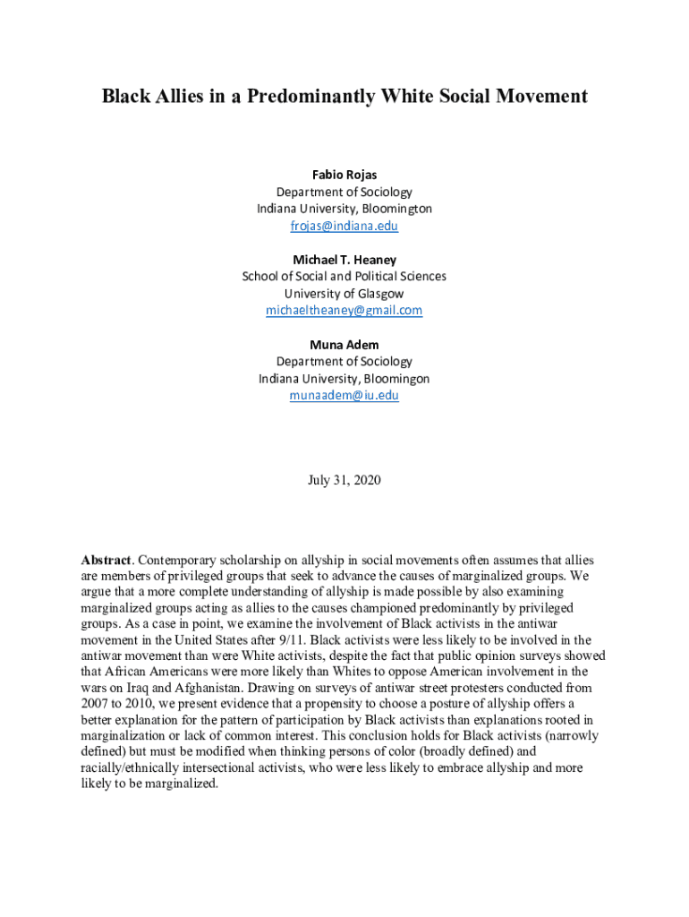 Black Allies in a Predominantly White Social MovementFabio Rojas Department of Sociology Indiana University, Bloomington frojas@indiana.edu Michael T. Heaney School of Social and Political Sciences