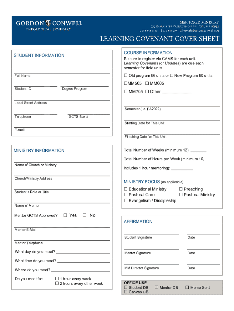 COURSE INFORMATIONSTUDENT INFORMATIONBe sure to register via CAMS for each unit. Learning Covenants (or Updates) are due each semester for field units. Old program 96 units or New Program 90 unitsFull
