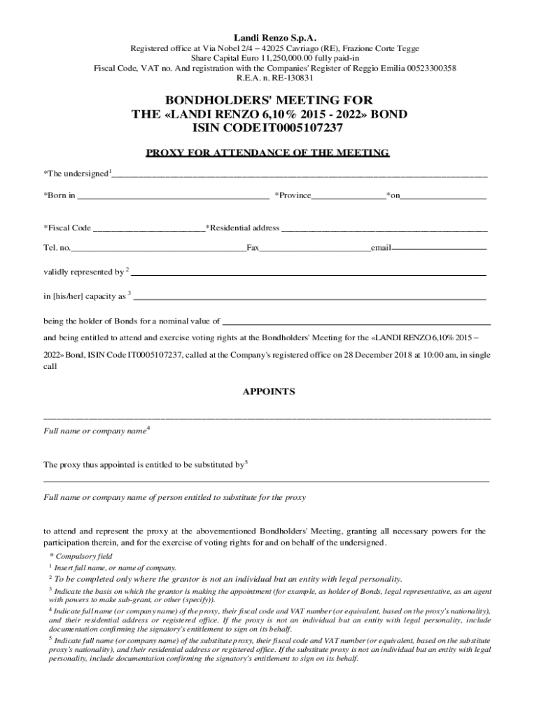 Landi Renzo S.p.A. Registered office at Via Nobel 2/4 42025 Cavriago (RE), Frazione Corte Tegge Share Capital Euro 11,250,000.00 fully paidin Fiscal Code, VAT no. And registration with the Companies\'