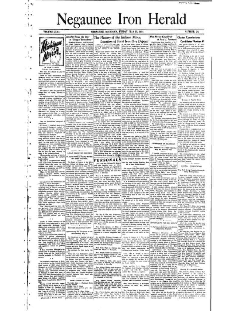 TuMw* [jb rirf. *1\' f *Negaunee Iron HeraldtV O L U M E L X X I.\'tj * 1*7 OKNH A LLK M AN4tUj* \'(#it*1 Michigan Vrm* Association Yes, suh! You should be glad to Jive in Michigan. Influx of many