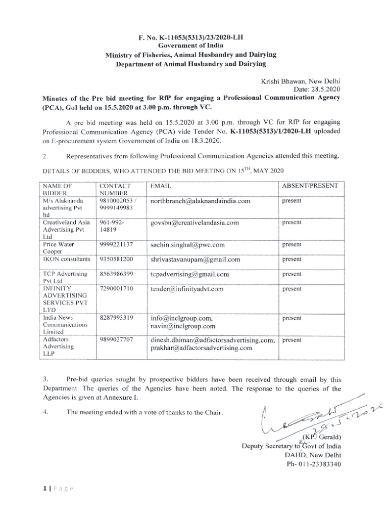 F. No. K11053(5313)/23/2020LH Government of IndiaMinistry of Fisheries, Animal Husbandry and Dairying Department of Animal Husbandry and Dairying Krishi Bhawan, New Delhi Date: 28.5.2020 Minutes of