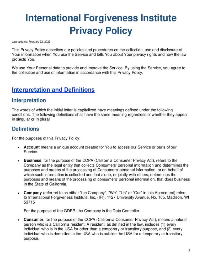 International Forgiveness Institute Privacy Policy Last updated: February 22, 2022This Privacy Policy describes our policies and procedures on the collection, use and disclosure of Your information