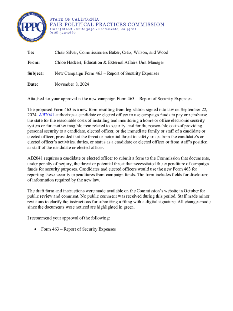 The new campaign form 463report is a regulatory document that must be filed by organizations involved in campaign activities to report their expenditures, contributions, and overall financial activities related to political campaigns.