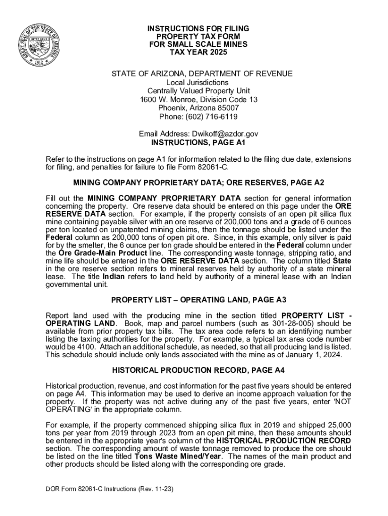 INSTRUCTIONS FOR FILING PROPERTY TAX FORM FOR SMALL SCALE MINES TAX YEAR 2025 STATE OF ARIZONA, DEPARTMENT OF REVENUE Local Jurisdictions Centrally Valued Property Unit 1600 W. Monroe, Division Code