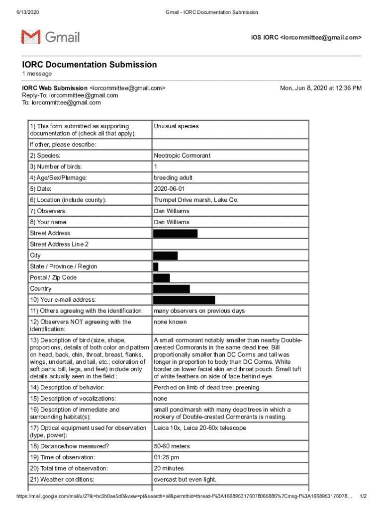 iorc documentation submission and other documents can be changed, filled out, and signed right in your Gmail inbox. You can use pdfFiller's add-on to do this, as well as other things. When you go to Google Workspace, you can find pdfFiller for Gmail. You should use the time you spend dealing with your documents and eSignatures for more important things, like going to the gym or going to the dentist.