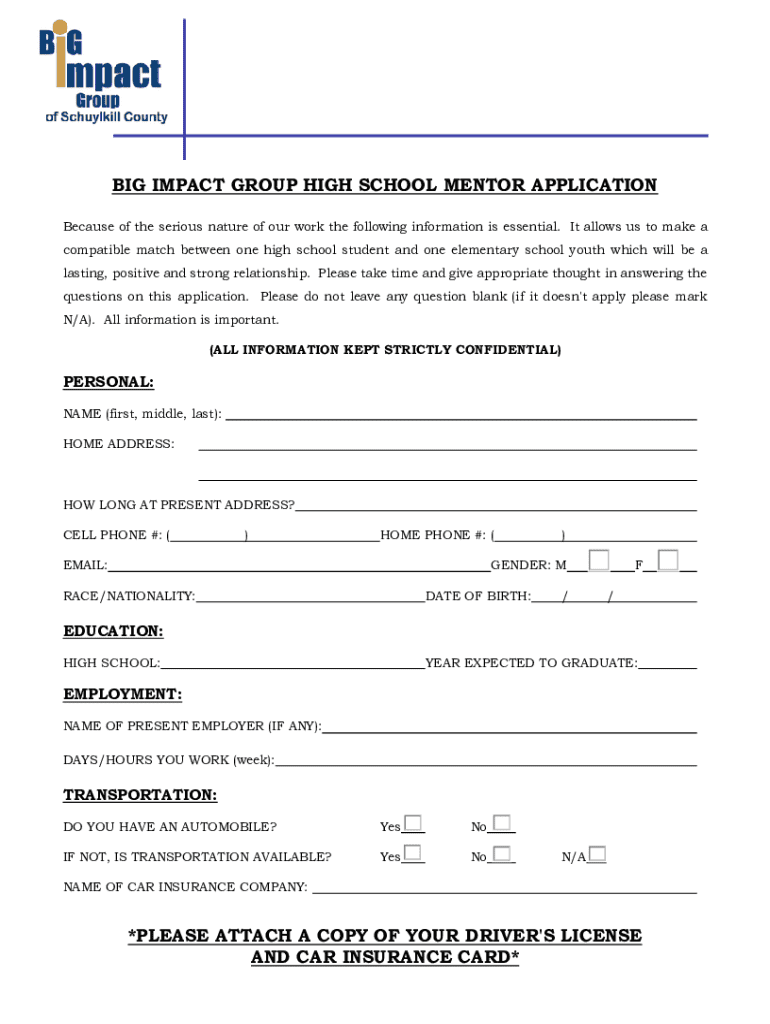 Get the free Big Impact Group High School Mentor Application
