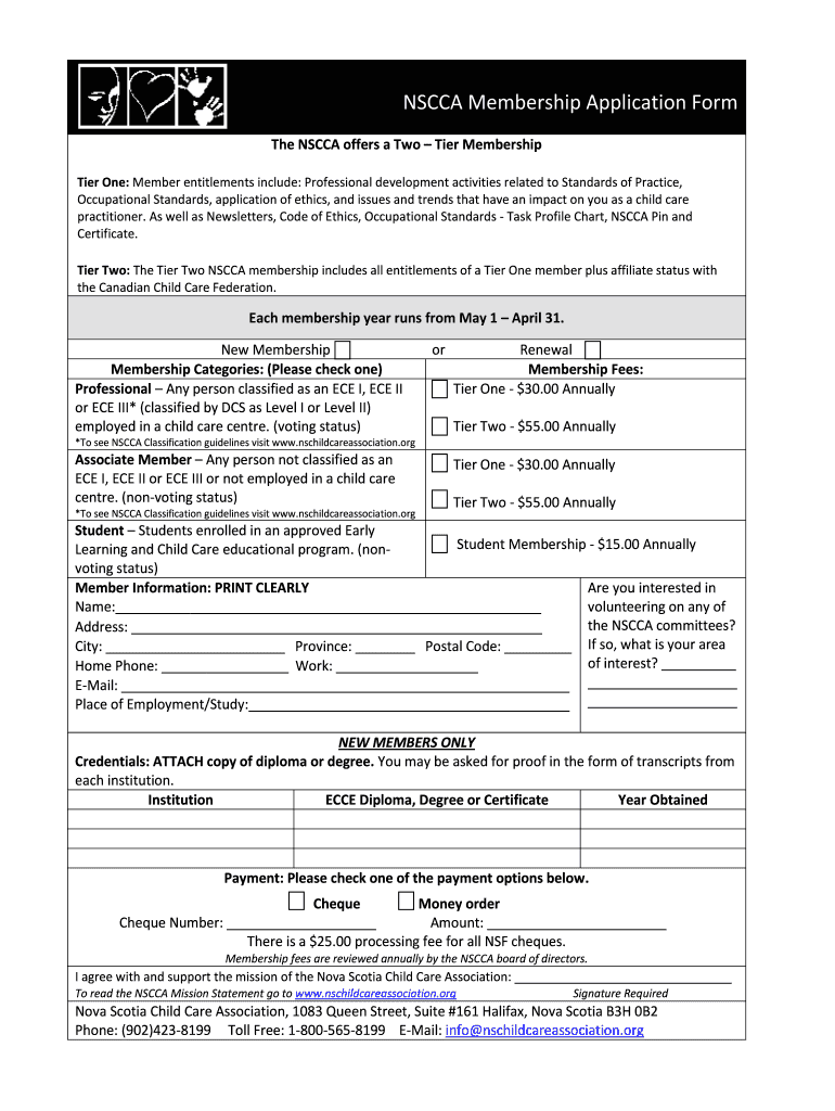 Get the free NSCCA Membership Application Form - Nova Scotia Child Care ... - nschildcareassociation