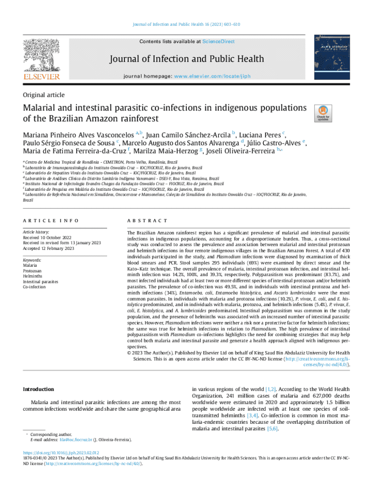 Journal of Infection and Public Health 16 (2023) 603610Contents lists available at ScienceDirectJournal of Infection and Public Health journal homepage: www.elsevier.com/locate/jiphOriginal articleMalarial